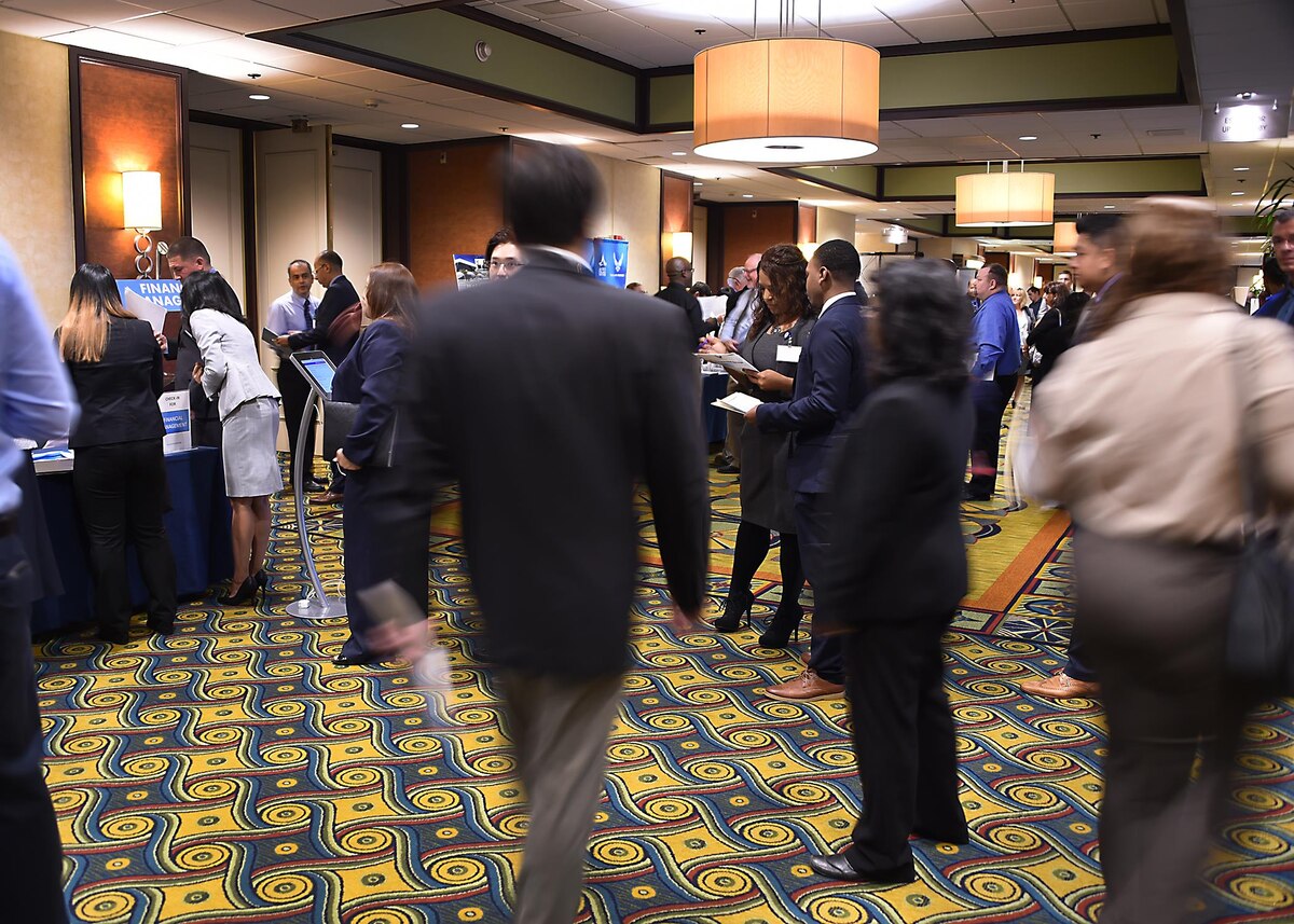 The hallways of the Los Angeles Airport Marriott were a flurry of activity as personnel from the Space and Missile Systems Center and Air Force Personnel Center hosted an Air Force Civilian Service Job Fair Nov. 16. More than 1,000 pre-registered applicants, plus another 500 in attendance, made the largest one-day hiring event ever hosted by the Air Force a success. (U.S. Air Force photos/Joseph Juarez, Sr.)